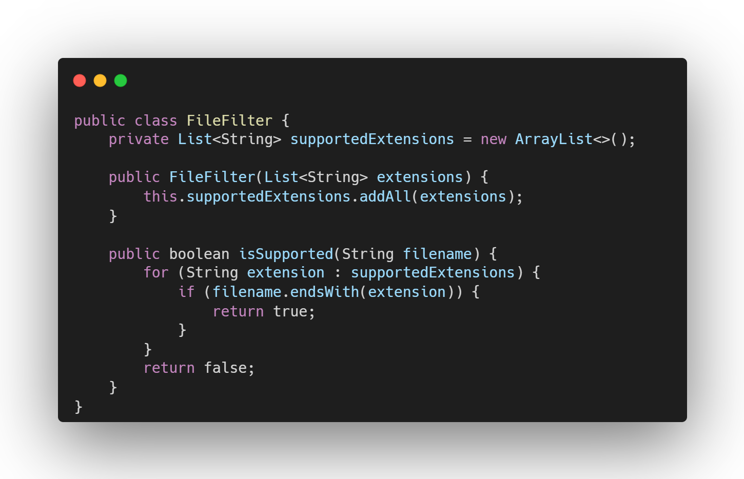 이렇게 하면 코드를 수정하지 않고도 지원되는 확장자 목록을 변경할 수 있습니다.