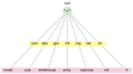 도메인들은 상단의 이미지와 같이 나무를 거꾸로 한 역트리(Inverted Tree)구조로 계층적으로 구성이 되어있다.