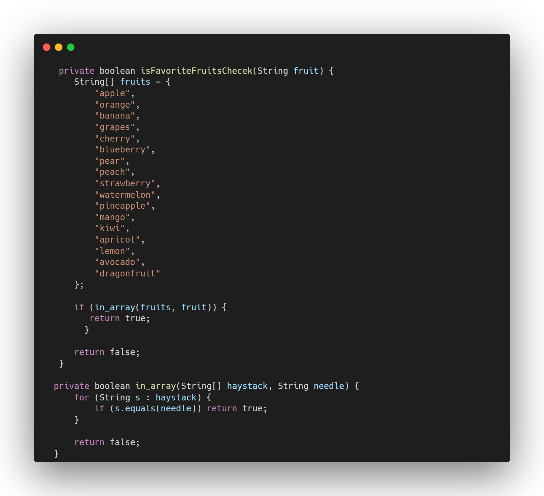 하지만 이렇게 String[]을 선언하고 과일 여부를 체크하는 방법보다는,