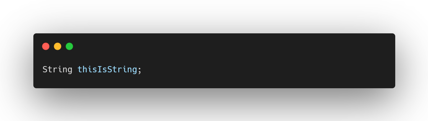 위 코드처럼 ' = ' 을 사용해 thisIsStirng에 값을 할당해주면